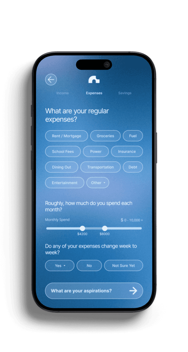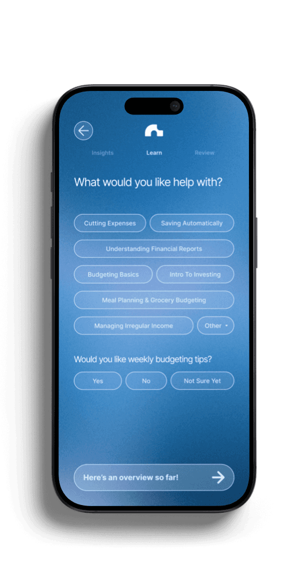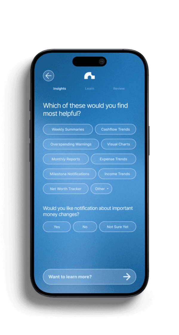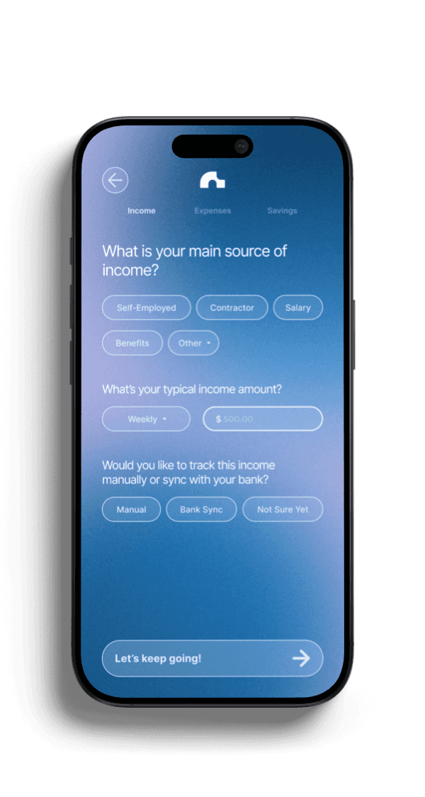 Users felt overwhelmed by traditional setup flows, so onboarding breaks financial input into small, familiar steps using presets and progress cues.