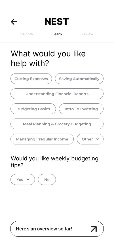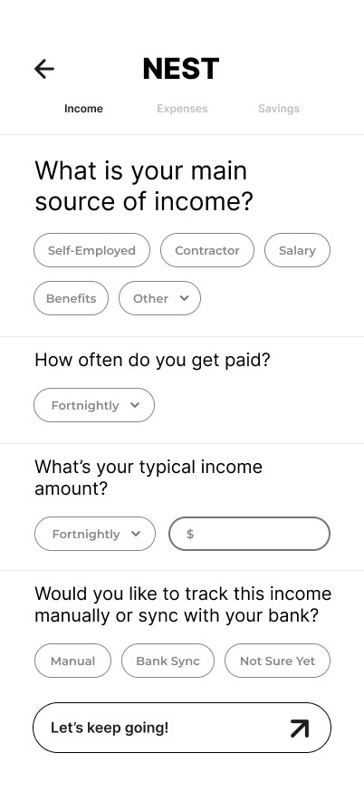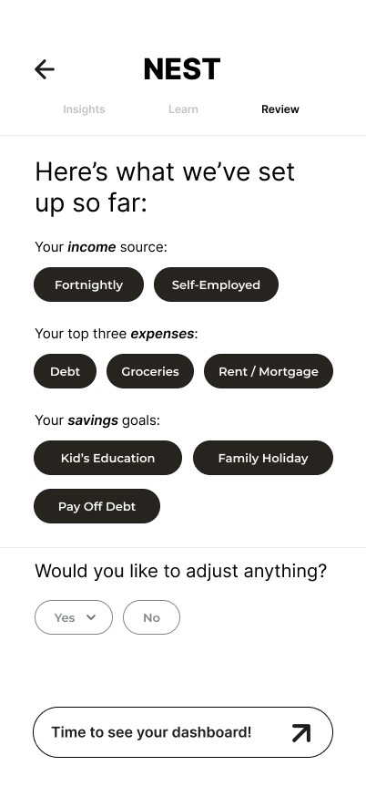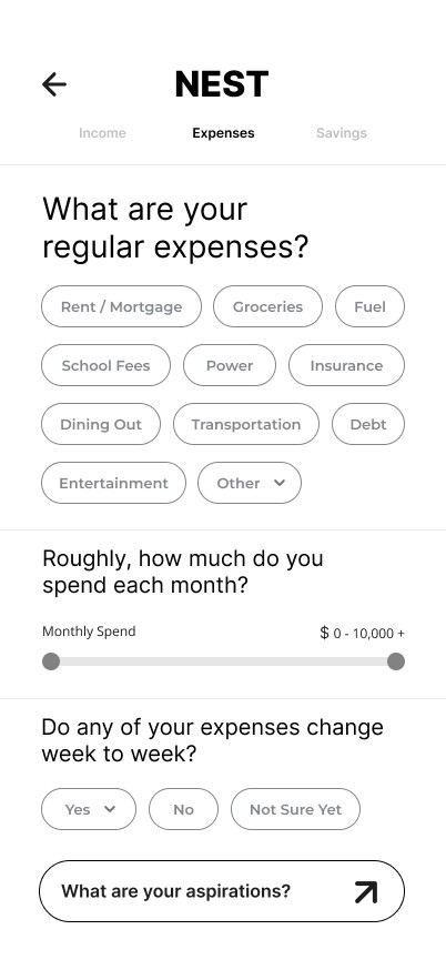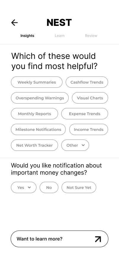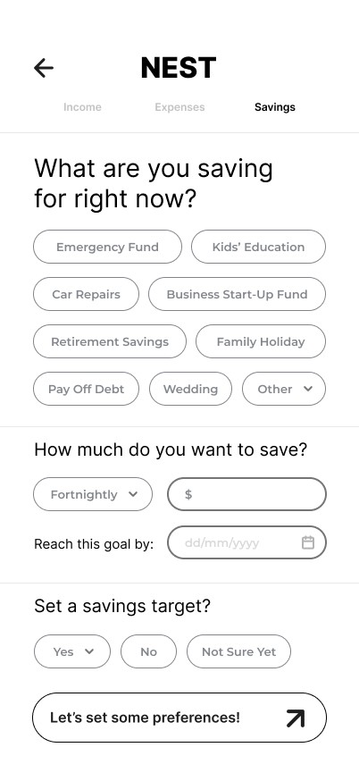 Nest is designed to support users at every stage of their financial journey - helping them understand their spending, set achievable goals, and feel more in control of their money.