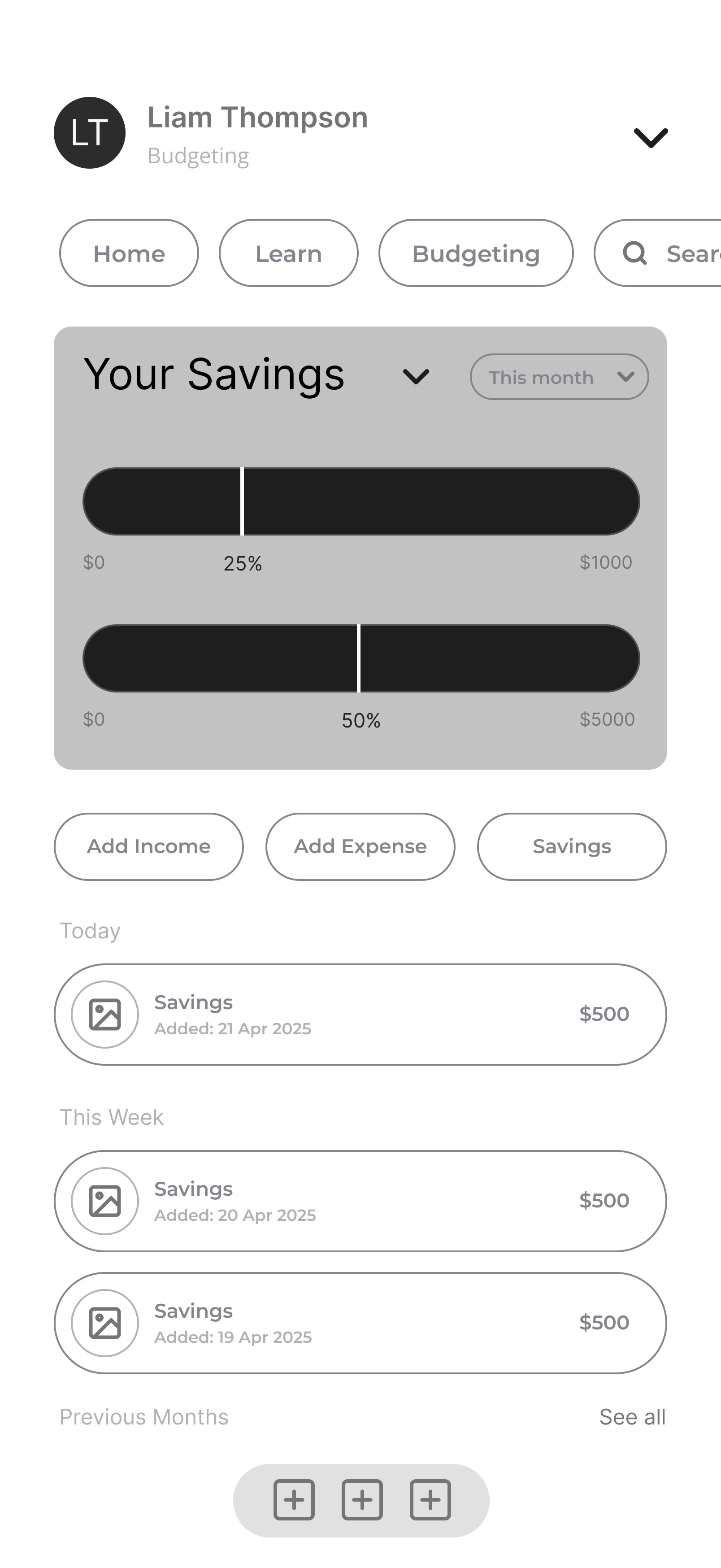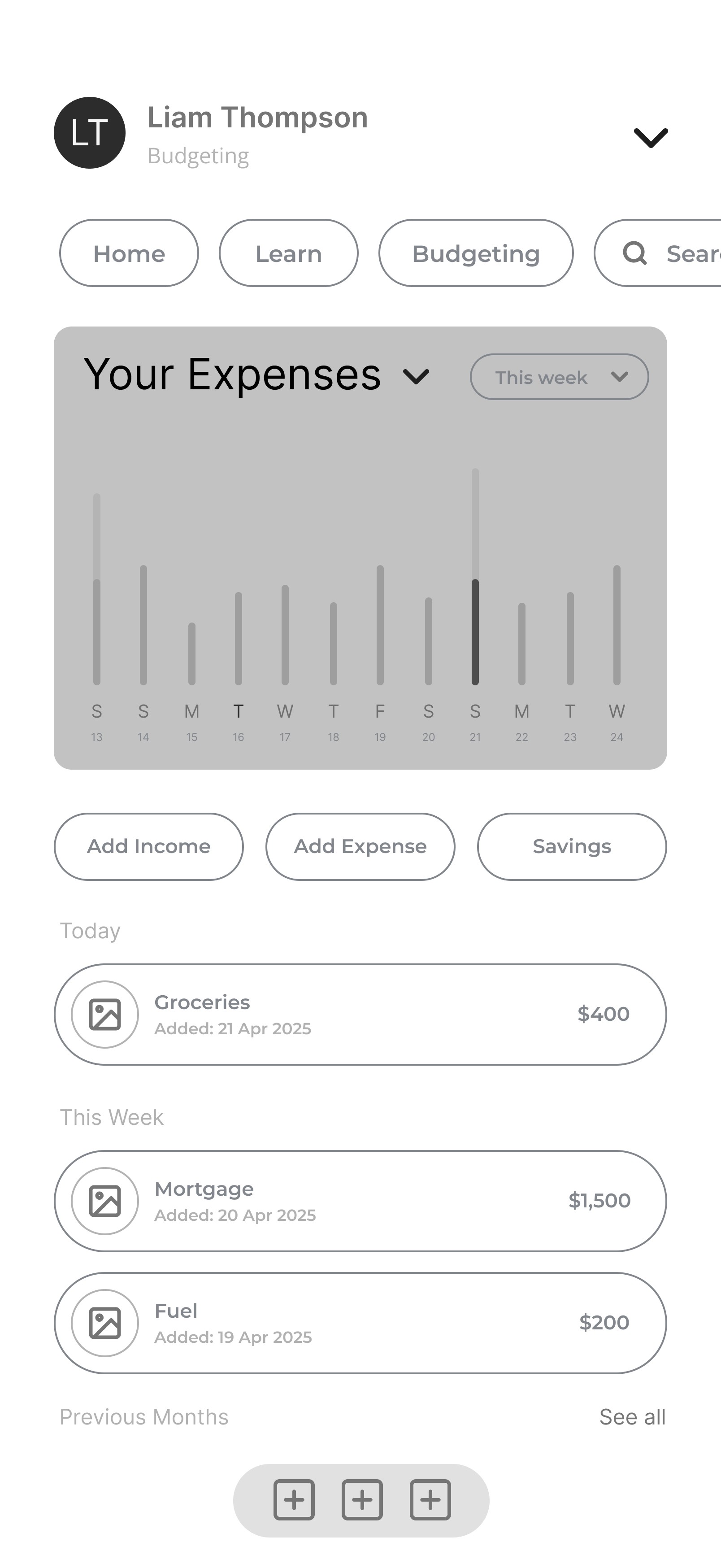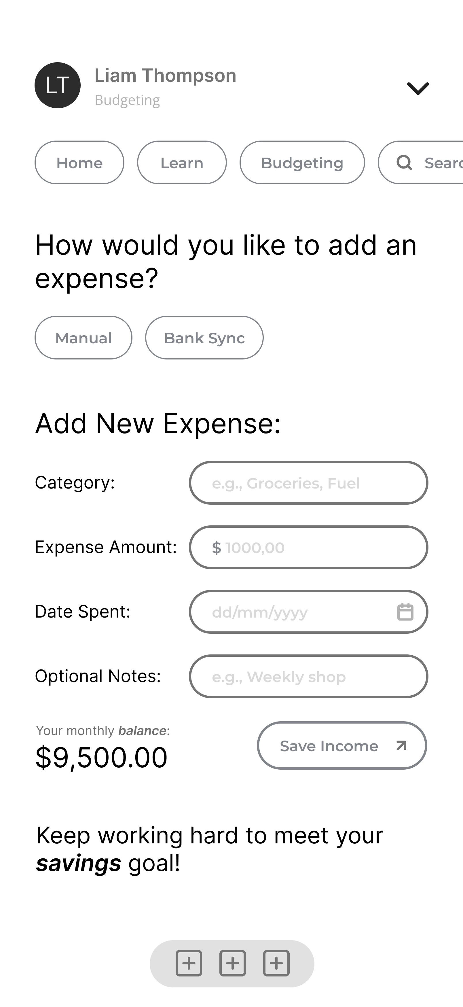 Liam needs a simple, guided tool that reduces overwhelm and helps him build healthier spending habits.
