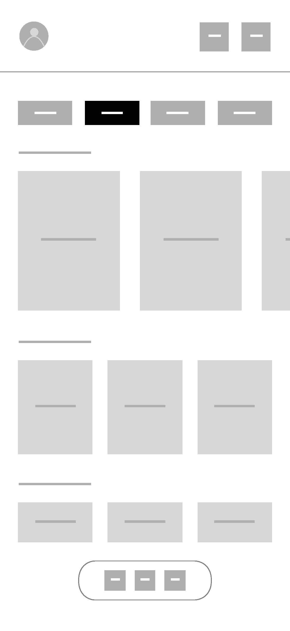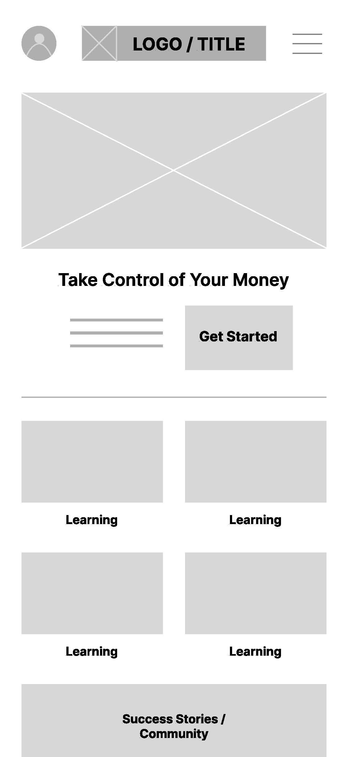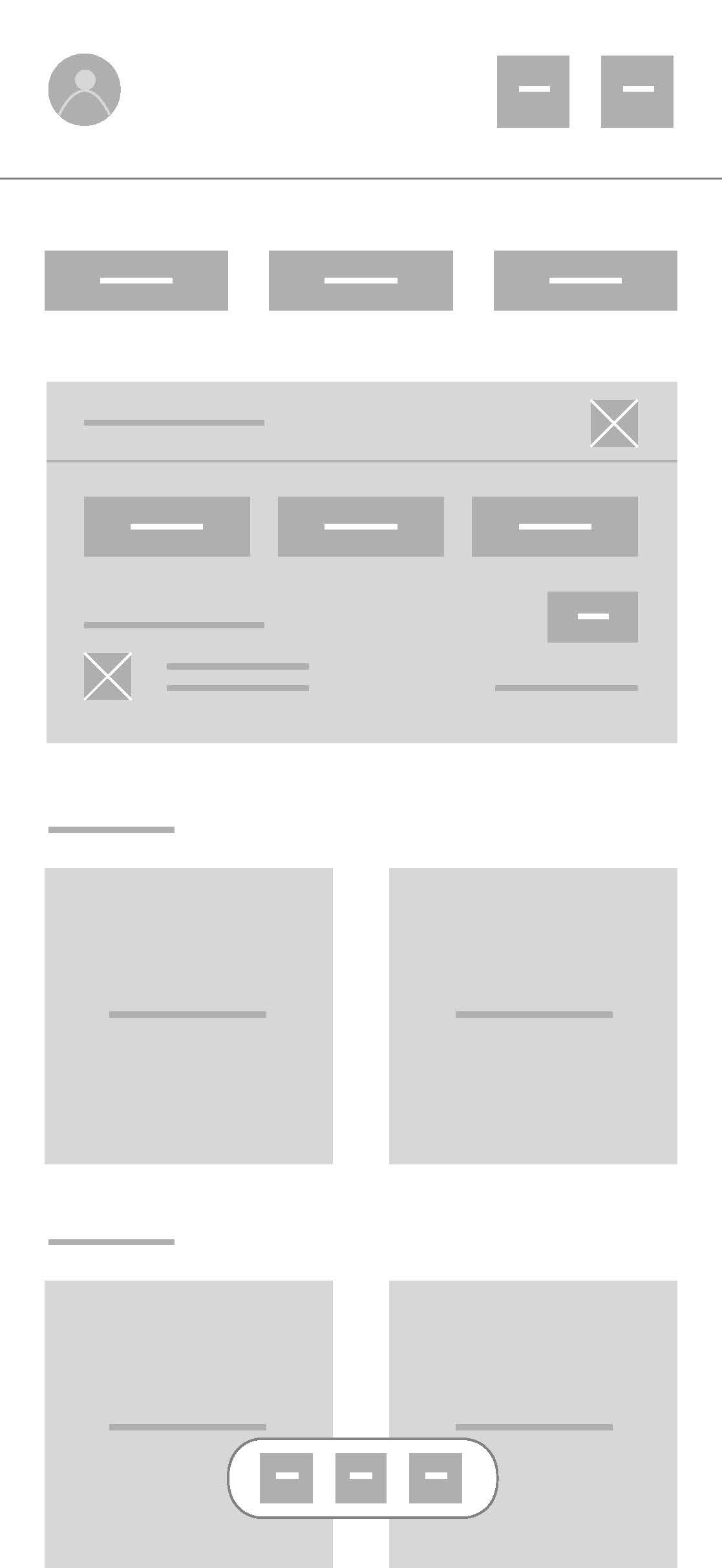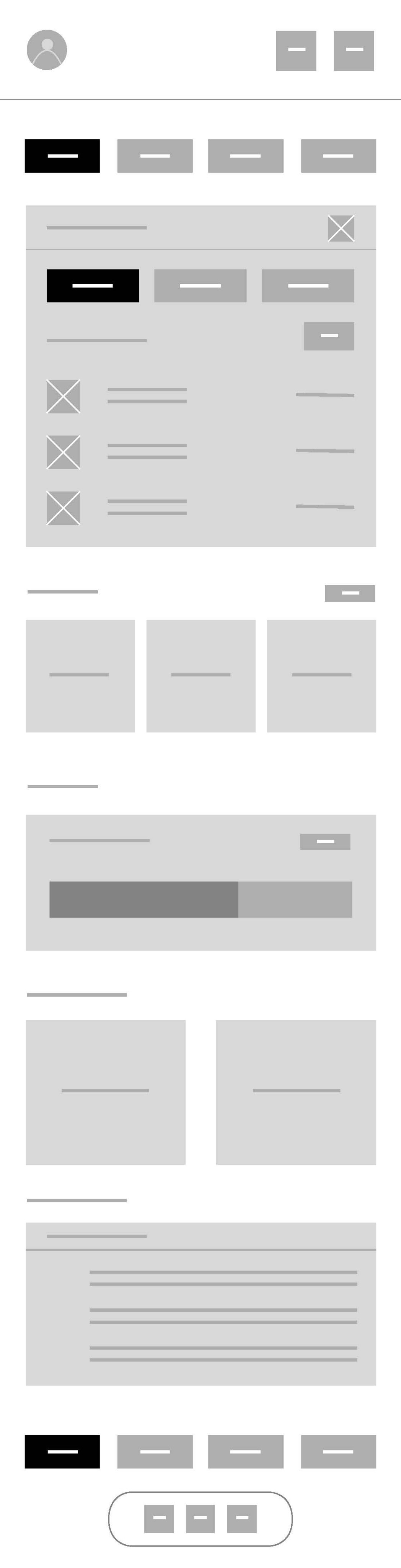 My initial low-fidelity wireframes focused on defining layout, hierarchy, and user flows without getting distracted by visual styling. At this stage, I aimed to validate the fundamental structure of the core experience.