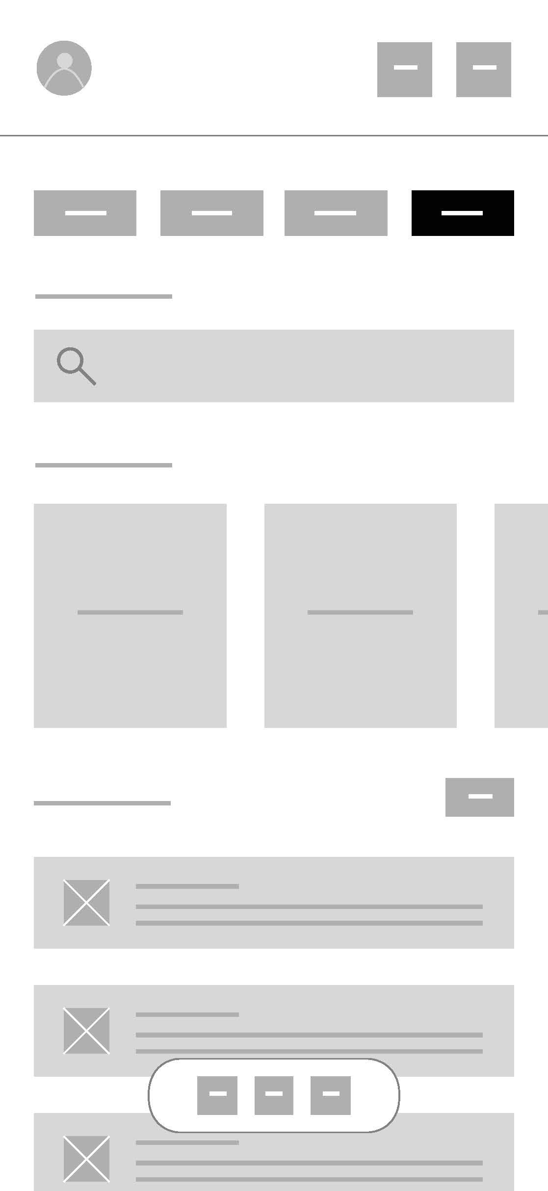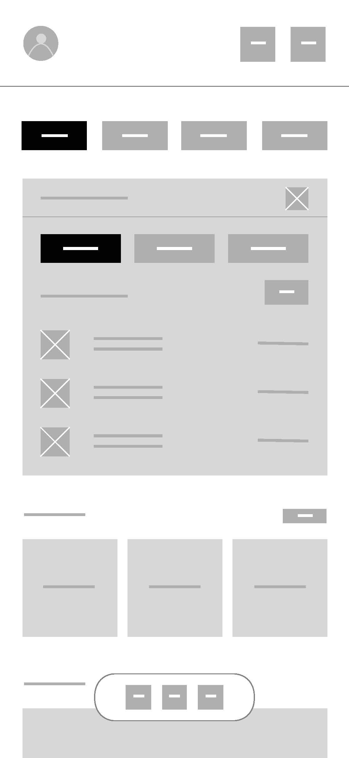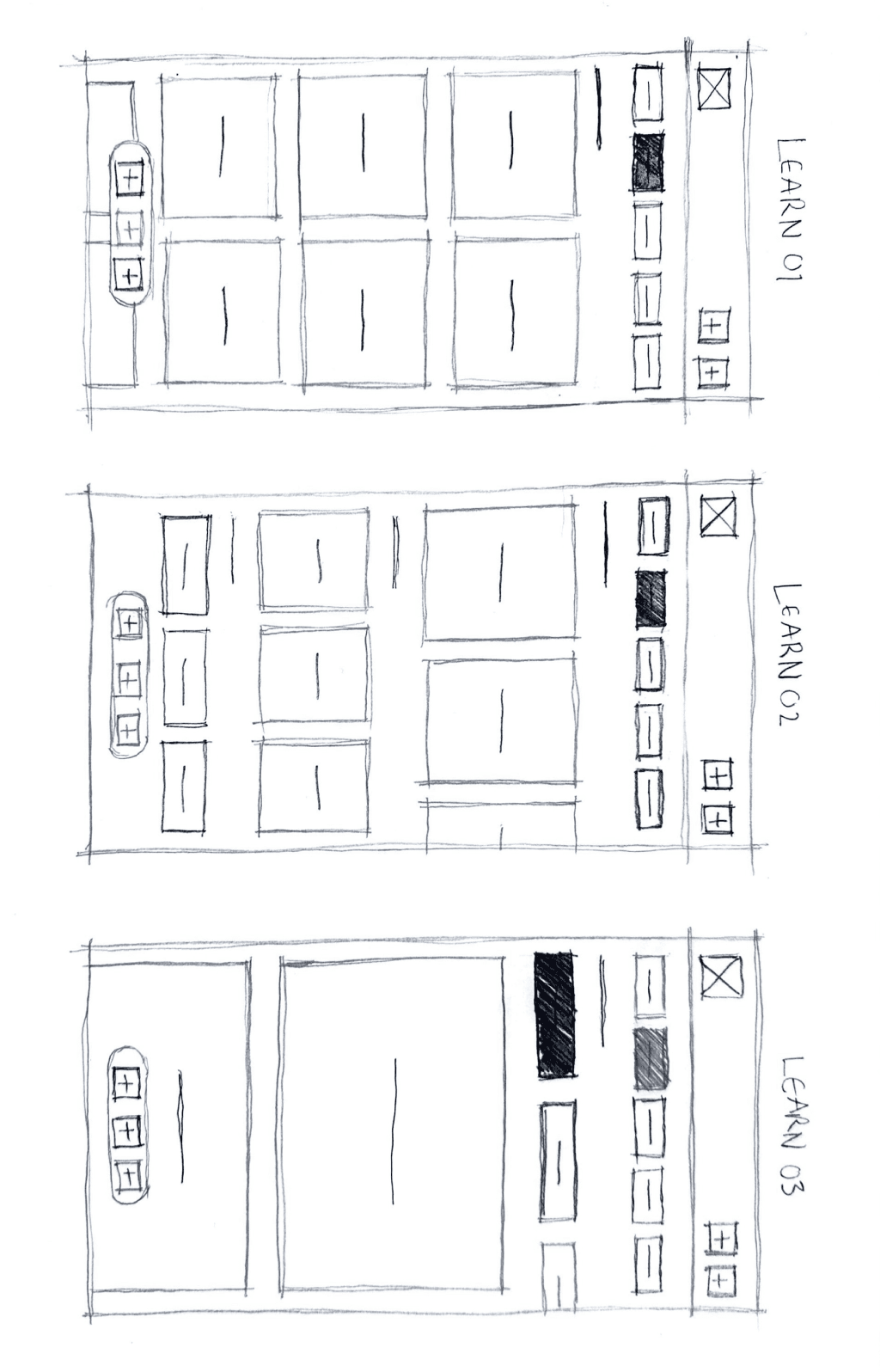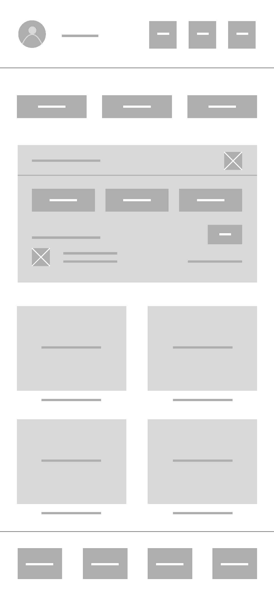 My initial low-fidelity wireframes focused on defining layout, hierarchy, and user flows without getting distracted by visual styling. At this stage, I aimed to validate the fundamental structure of the core experience.