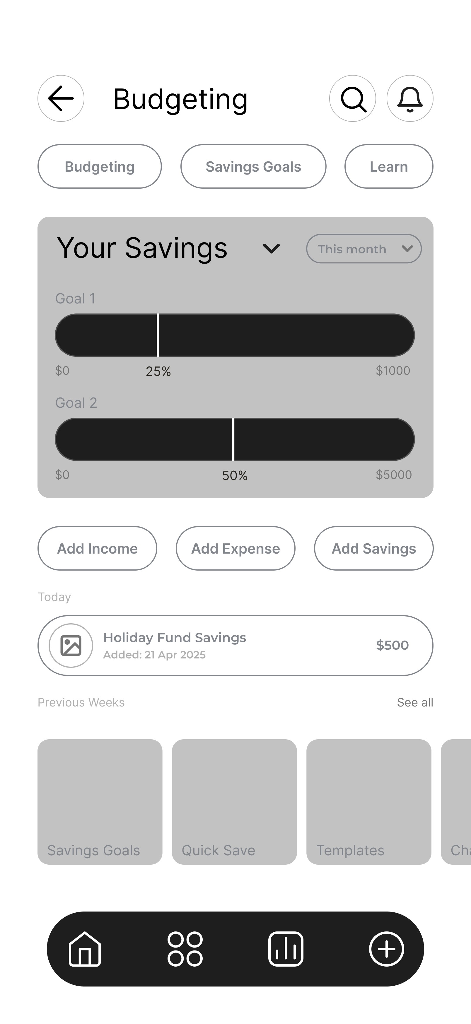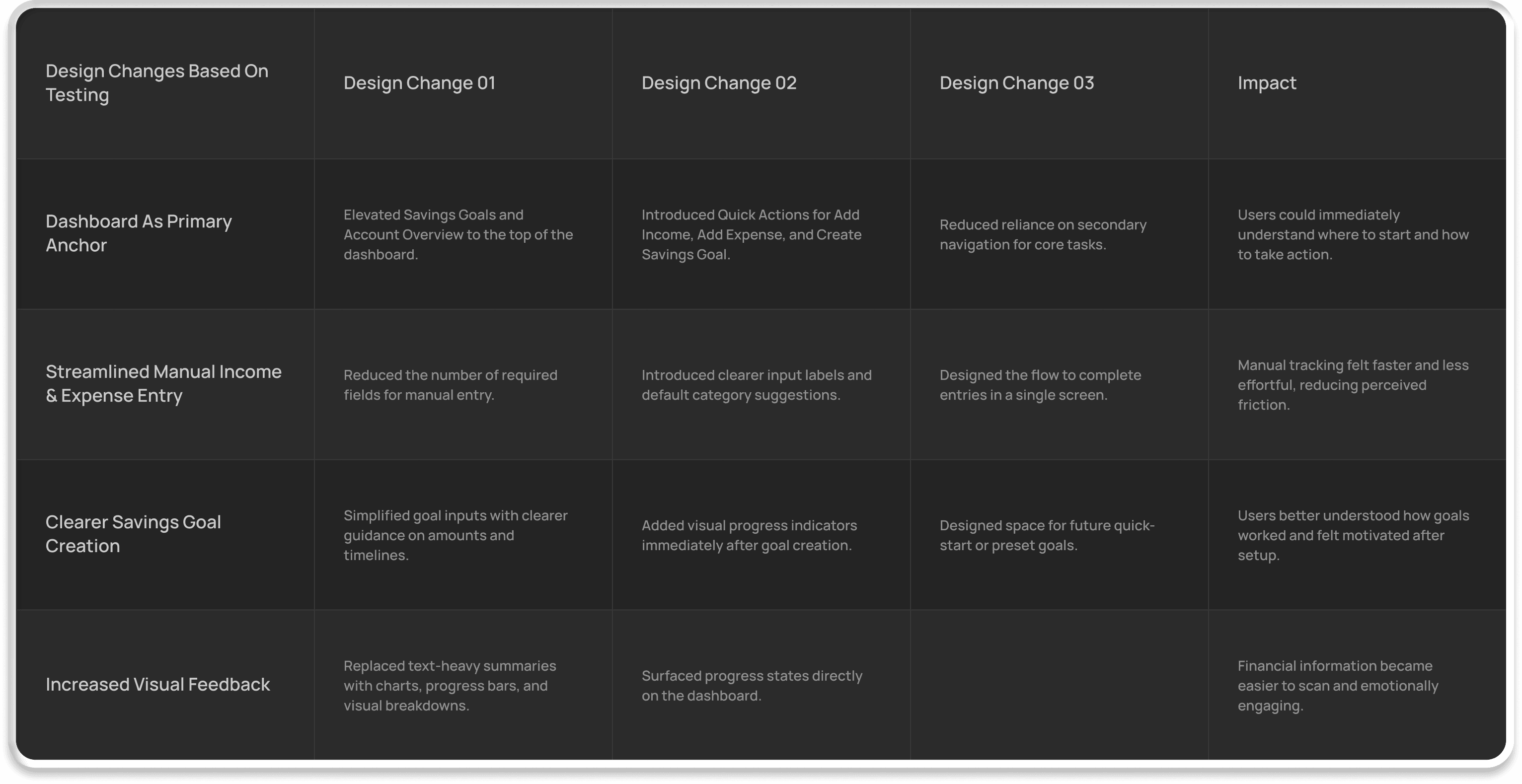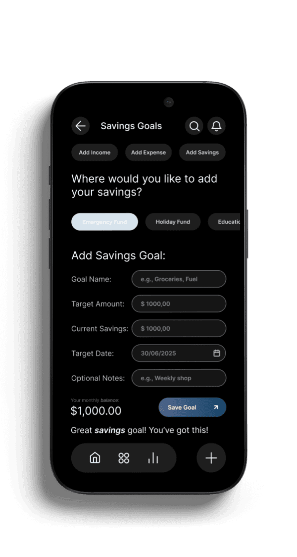 The final product simplifies key financial flows, giving users clearer visibility over their spending and helping them stay accountable to their goals.