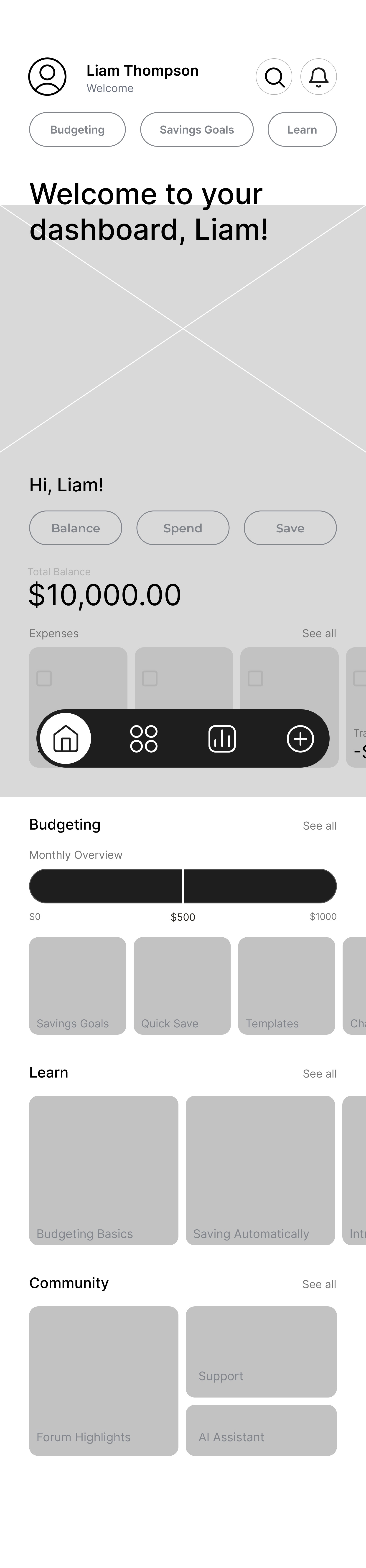 HOMESCREEN DASHBOARD TO BUDGETING