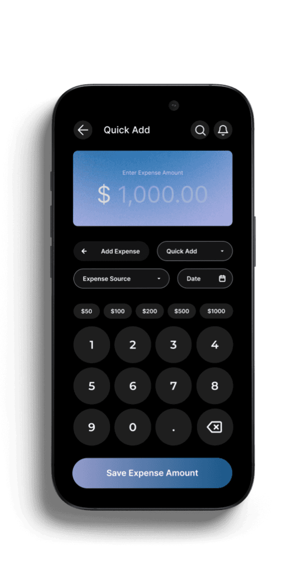Amount-first entry, presets, and a numeric keypad reduce effort, while structured forms remain available for fuller entries. This balance encourages consistent logging without friction.